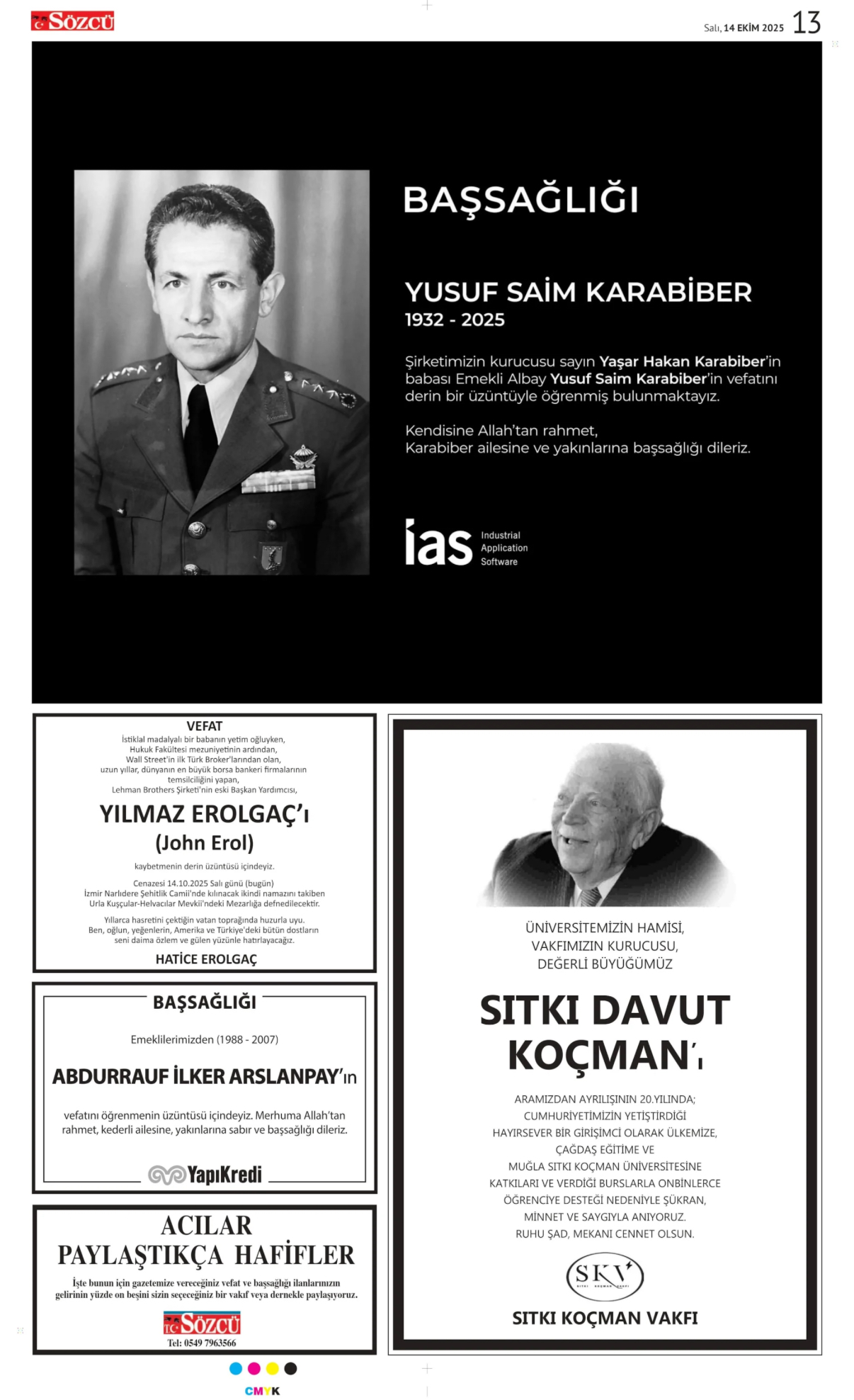 Etiketlendi Anma İlanı, Başsağlığı İlanı, Gazeteye Vefat İlanı Vermek, Mevlid İlanı, Sıtkı Davut Koçman Anma, Sözcü Gazetesi İlan Servisi, Sözcü Gazetesi Ölüm İlanı, Sözcü Gazetesi Vefat İlanı, Sözcü Gazetesine Vefat İlanı Vermek, Yılmaz Erolgaç Vefat, Yusuf Saim Karabiber Vefat