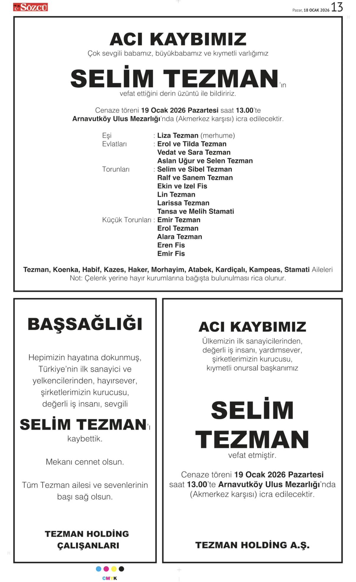 Etiketlendi Anma İlanı, Başsağlığı İlanı, Eren Kemahlı Vefat İlanı, Gazeteye Vefat İlanı Vermek, Mevlid İlanı, Selim Tezman Vefat İlanı, Sözcü Gazetesi İlan Servisi, Sözcü Gazetesi İletişim, Sözcü Gazetesi Ölüm İlanı, Sözcü Gazetesi Vefat İlanı, Sözcü Gazetesine Vefat İlanı Vermek, sözcü vefat, Vefat İlanı Sözcü
