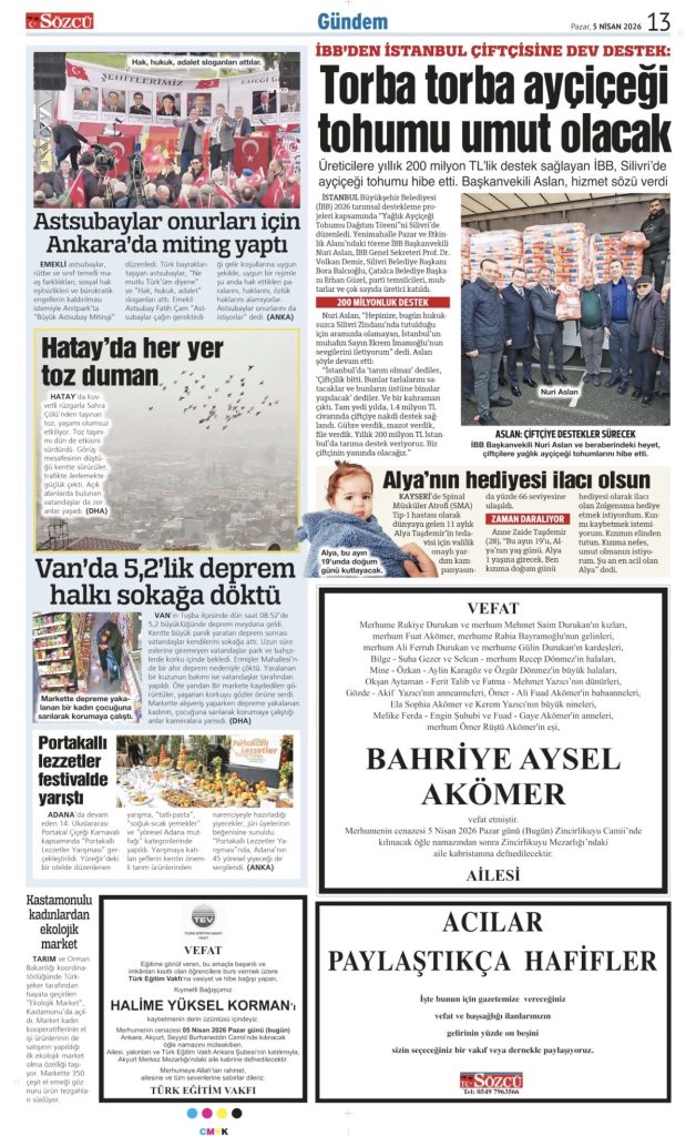 Sözcü Teşekkür İlanı