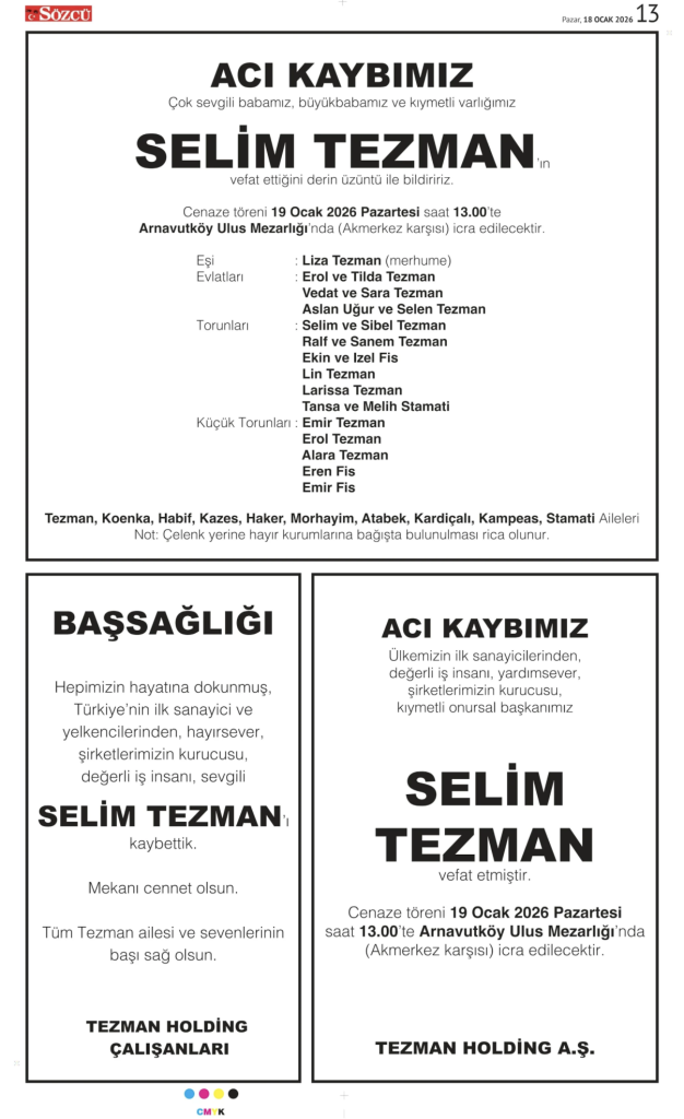 • Sözcü Vefat İlanı