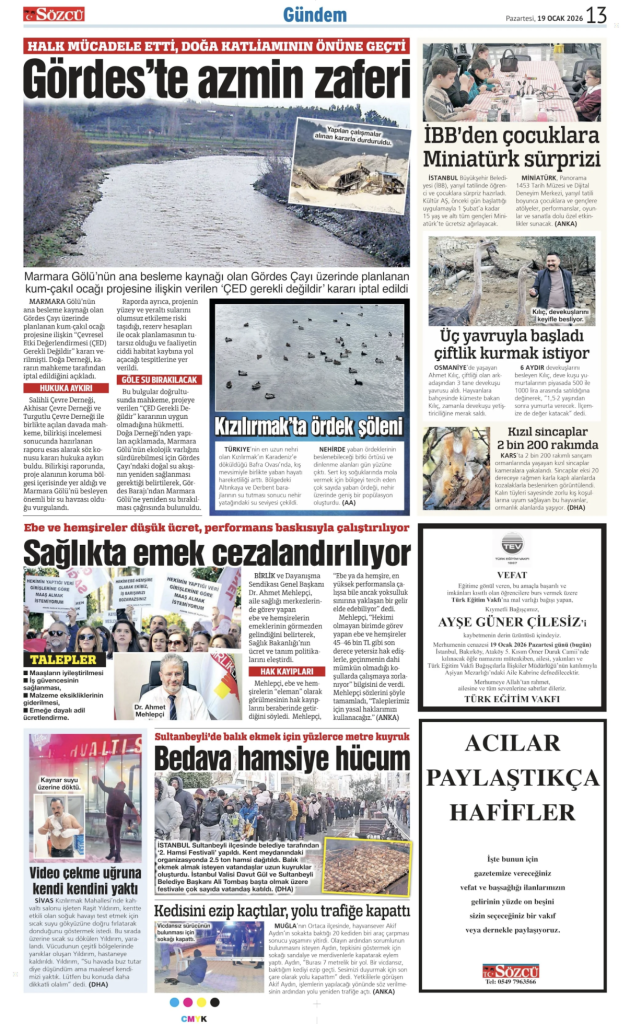• Sözcü Teşekkür İlanı