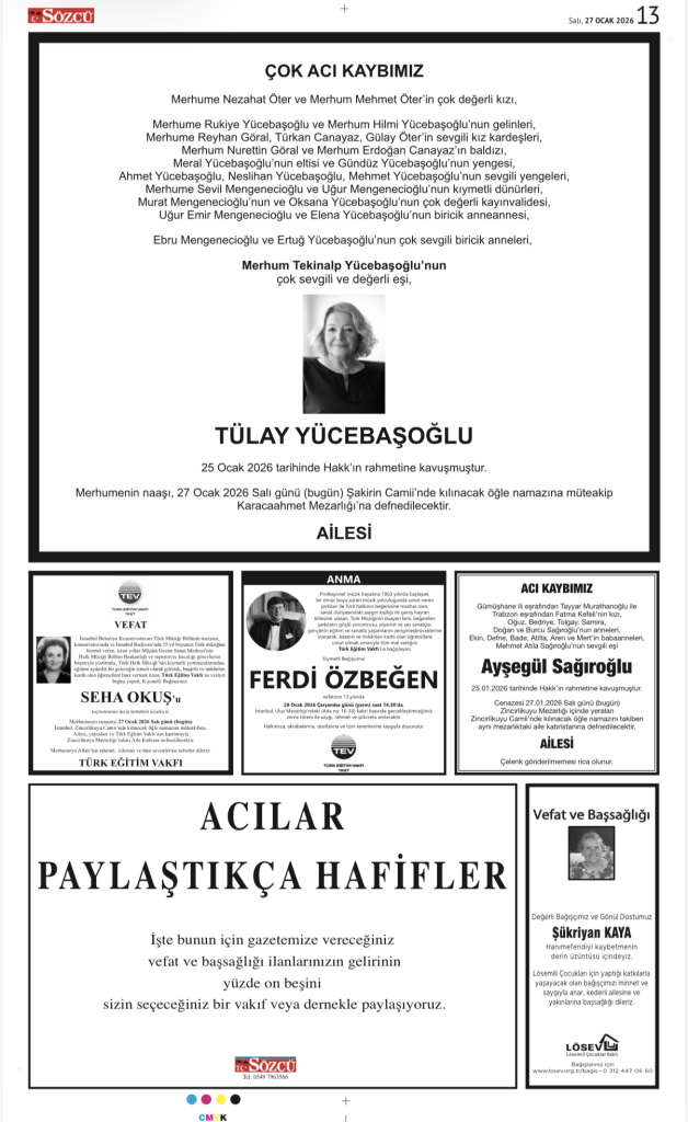 27 Ocak 2026 Vefat İlanları