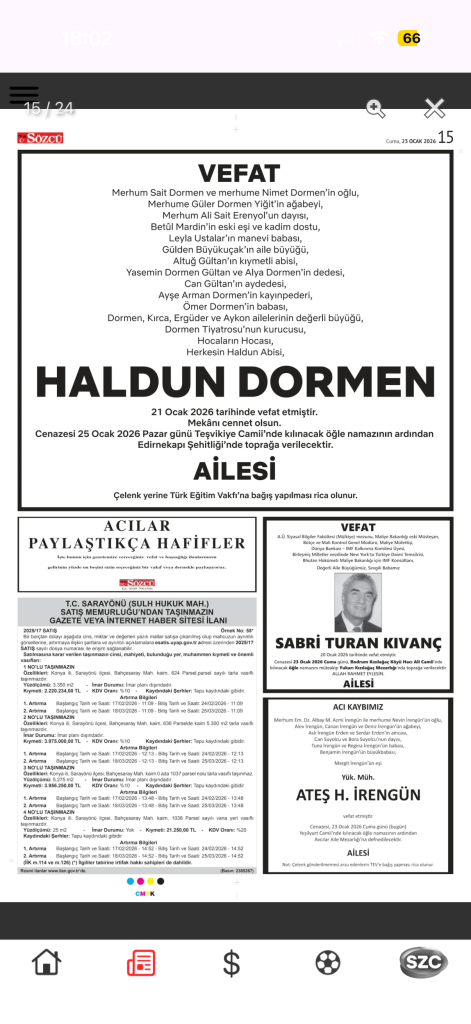 23 Ocak 2026 Vefat İlanları