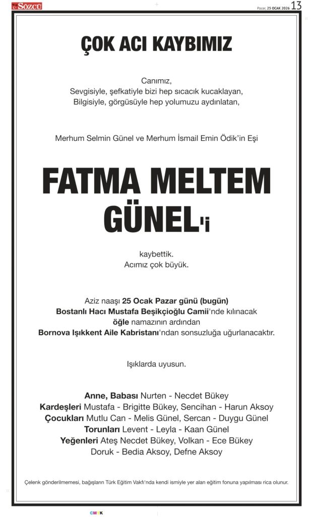 25 Ocak 2026 Vefat İlanları