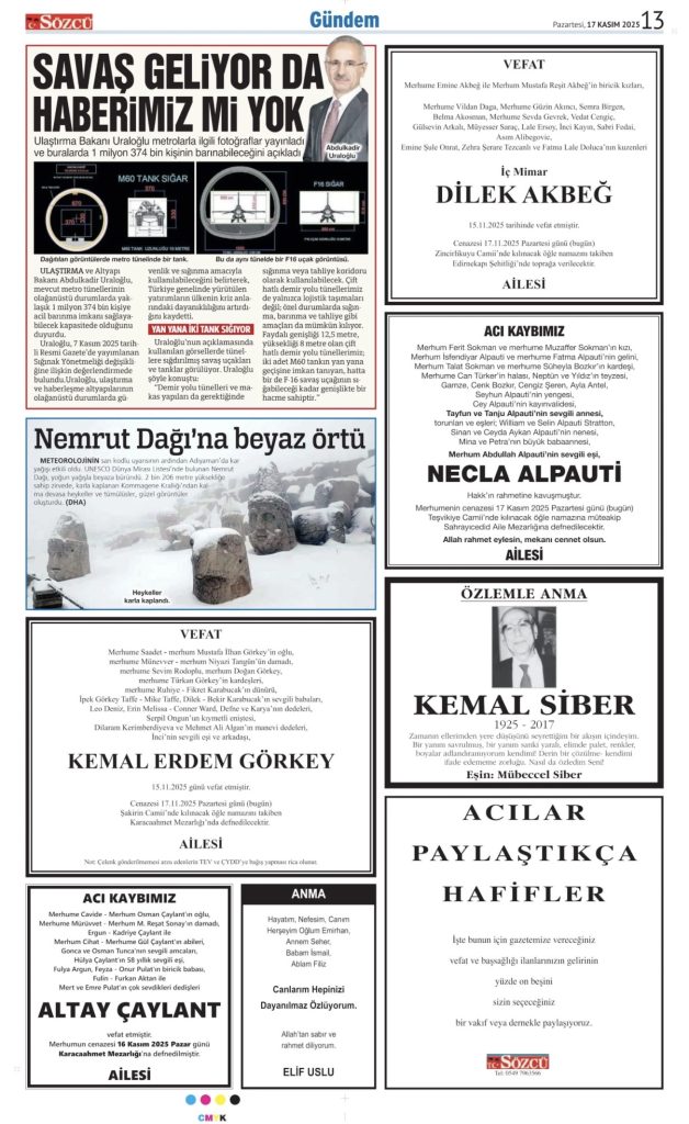 13 Kasım 2025 Vefat İlanları