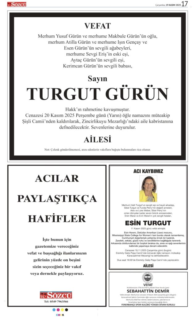 17 Kasım 2025 Vefat İlanları