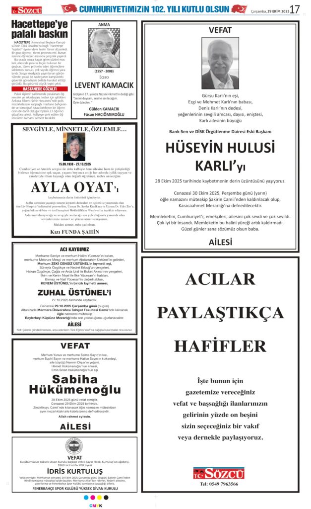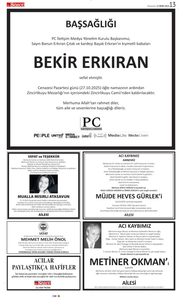 • Sözcü Vefat İlanı