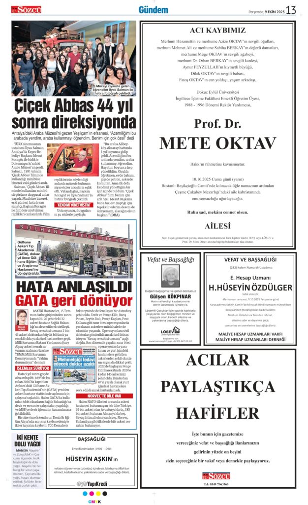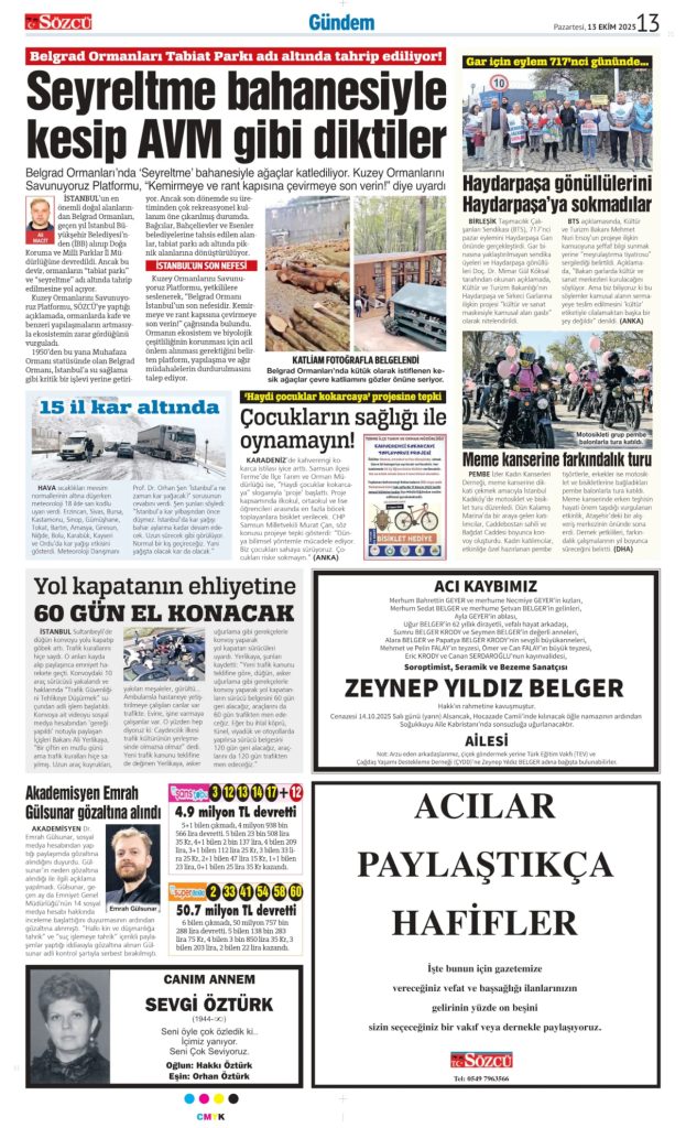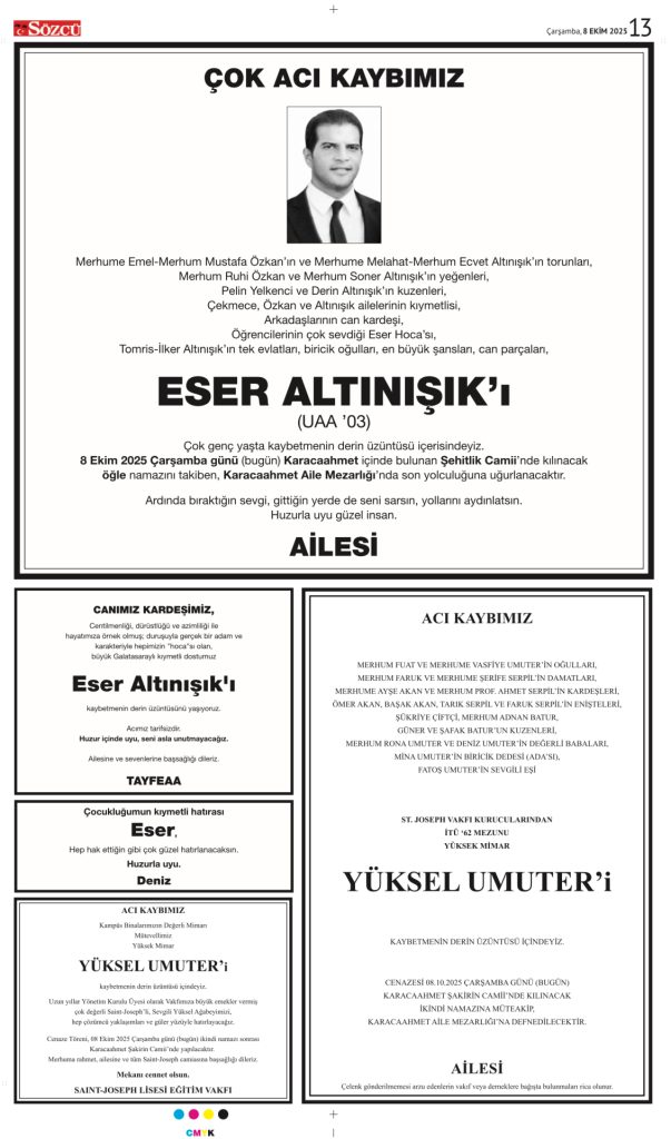 13 Ekim 2025 Vefat İlanları