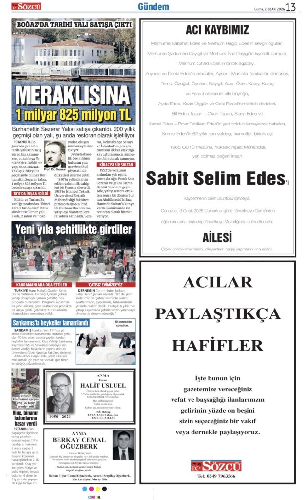 • Sözcü Vefat İlanı
