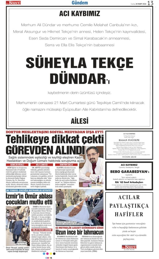 20 Mart 2026 Vefat İlanları