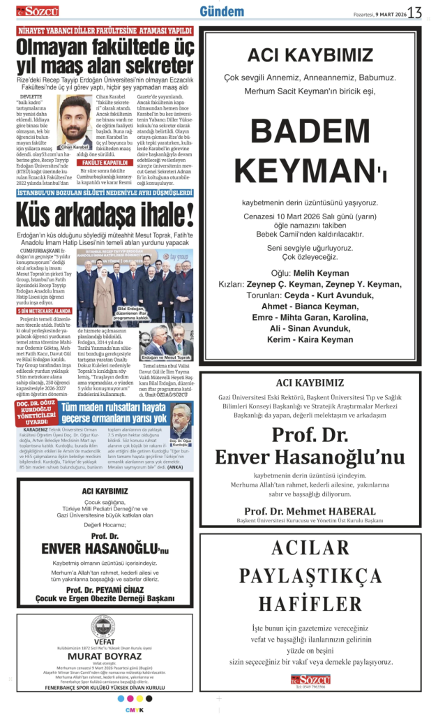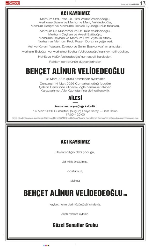 • Sözcü Vefat İlanı