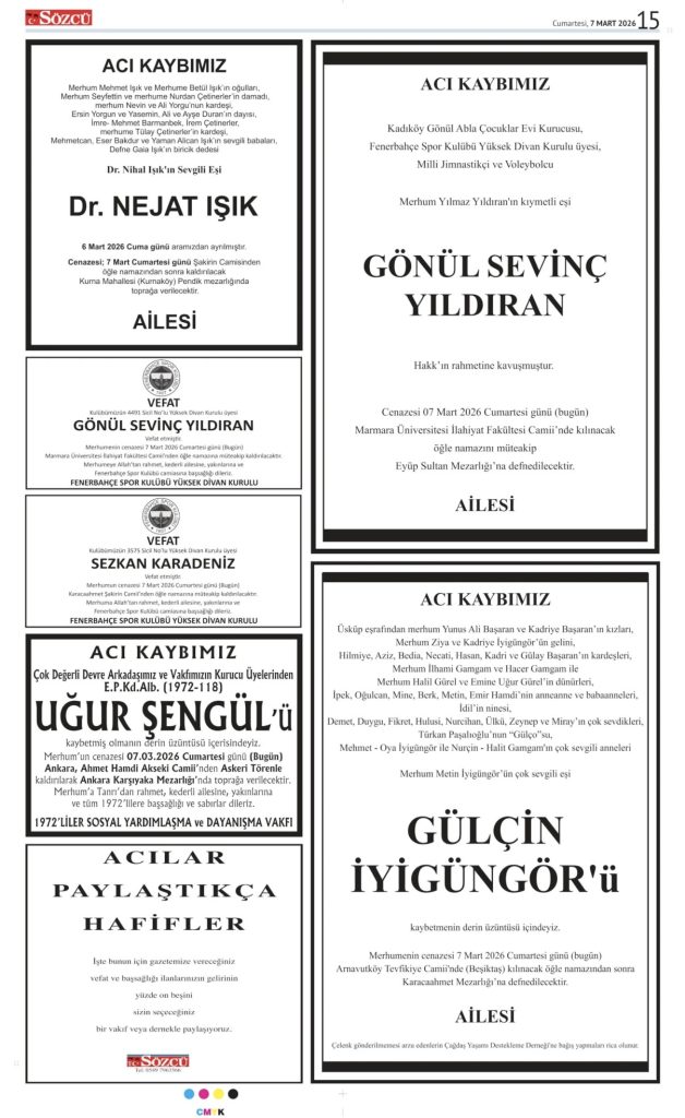 07 Mart 2026 Vefat İlanları