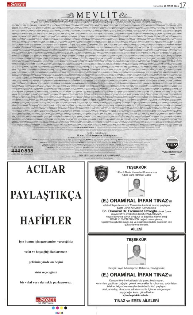• Sözcü Teşekkür İlanı