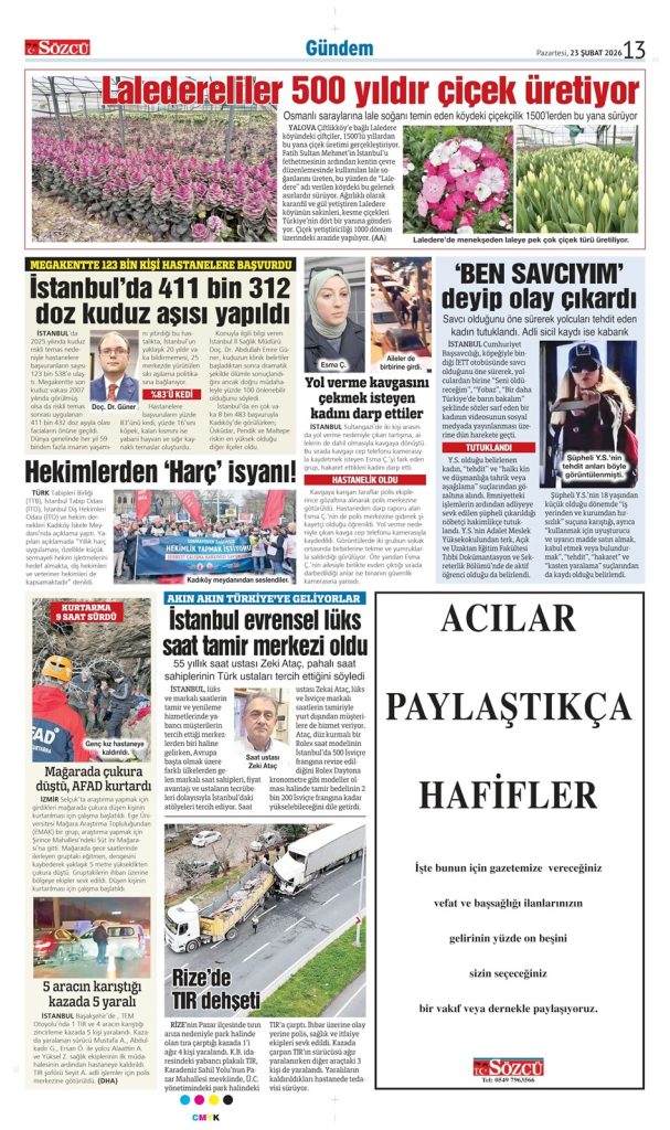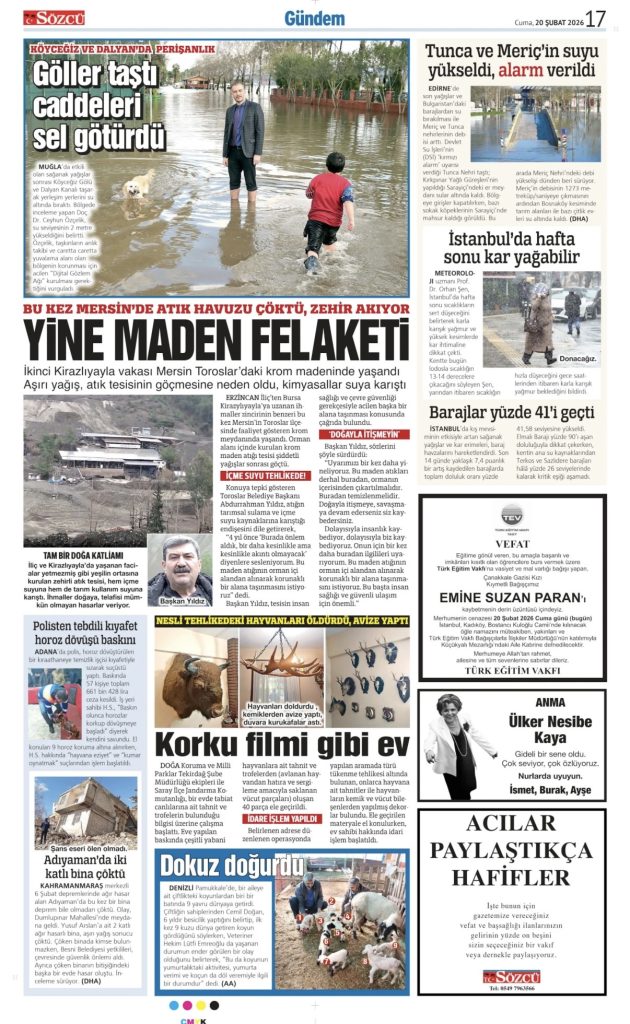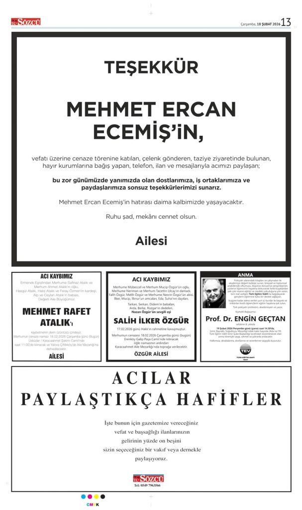 • Sözcü Teşekkür İlanı