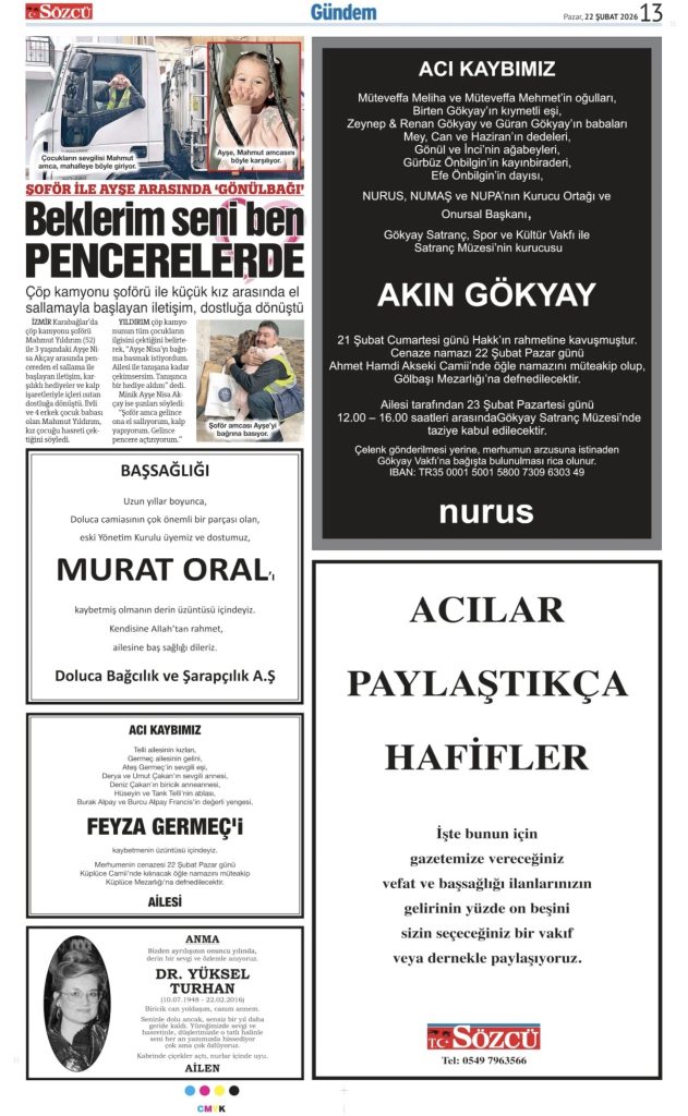 • Sözcü Vefat İlanı